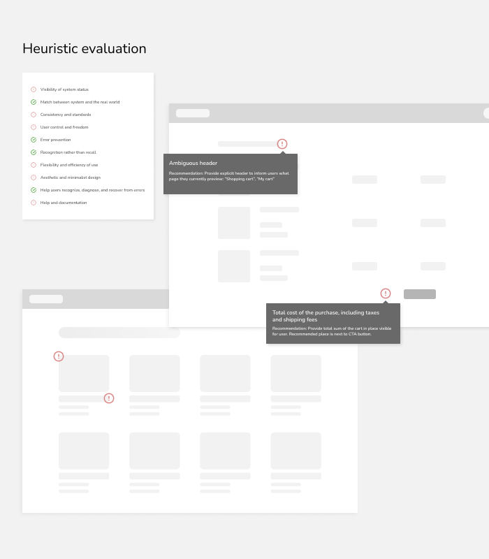 We perform heuristic evaluation, cognitive walkthrough, benchmarking and more, depending on your business specificity. All suited for your needs.